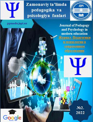 Том 2 № 2 (2022): Zamonaviy ta'limda pedagogika va psixologiya fanlari | Журнал Педагогики и психологии в современном образовании